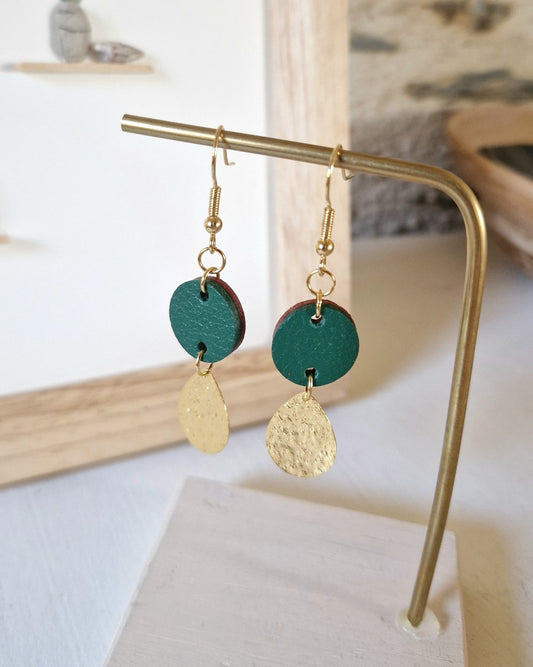 Boucles d’oreille pendantes vertes et or