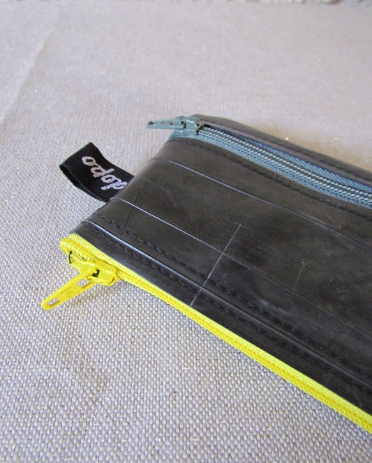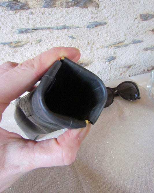 Étui à lunettes clic-clac en chambre à air de vélo upcyclée à fines rayures
