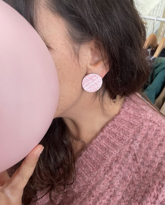 Boucles d'oreille puces rose et blanc barbie / Monique