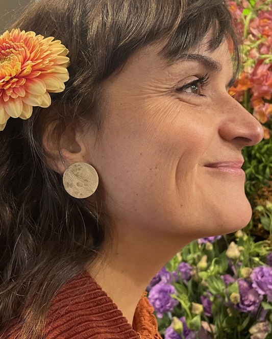 Boucles d'oreille puces de cuir doré sombre / Monique