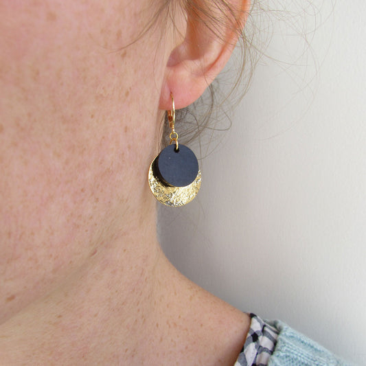 Boucles d'oreille pendantes légères or et noir perles transparentes