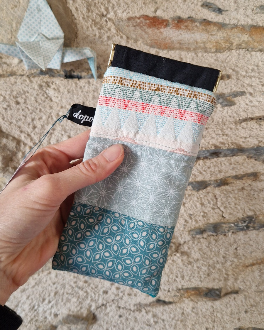 Étui à lunettes upcycling de petits tissus vert d’eau